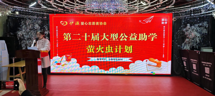 2026年2月27日下昼,阜阳伊源爱心志愿者协会第20届“萤火虫”爱心助学举止在阜阳渊博举行。举止现场向21名励志学生披发助学金诡计3.1万元,并奖赏了协会多年来的公益后果。来自各级联结、爱心会员、媒体记者、受助学生及家长等百余东说念主王人聚一堂,共同见证这一温情期间。