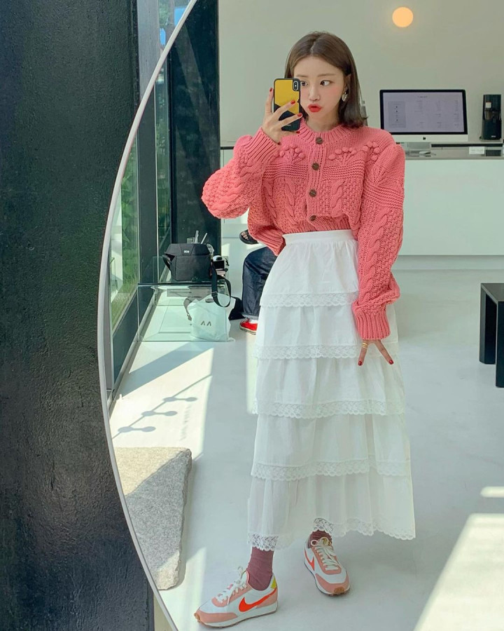 第三,鞋履要呼应细节,适配全场景。早春的鞋履,毋庸一味追求高跟鞋,一对御寒又可人的毛绒边平底鞋,就能完好适配整套穿搭。棕色的鞋履和诚恳衫提花里的棕色元素呼应,鞋面上的刺绣增多了可人感,和合座的慵懒氛围完好契合,同期毛绒鞋口和长袜的衔尾当然,不会截断腿部线条,支吾早春的微凉天气刚刚好,平方居家粗略出街齐能穿。