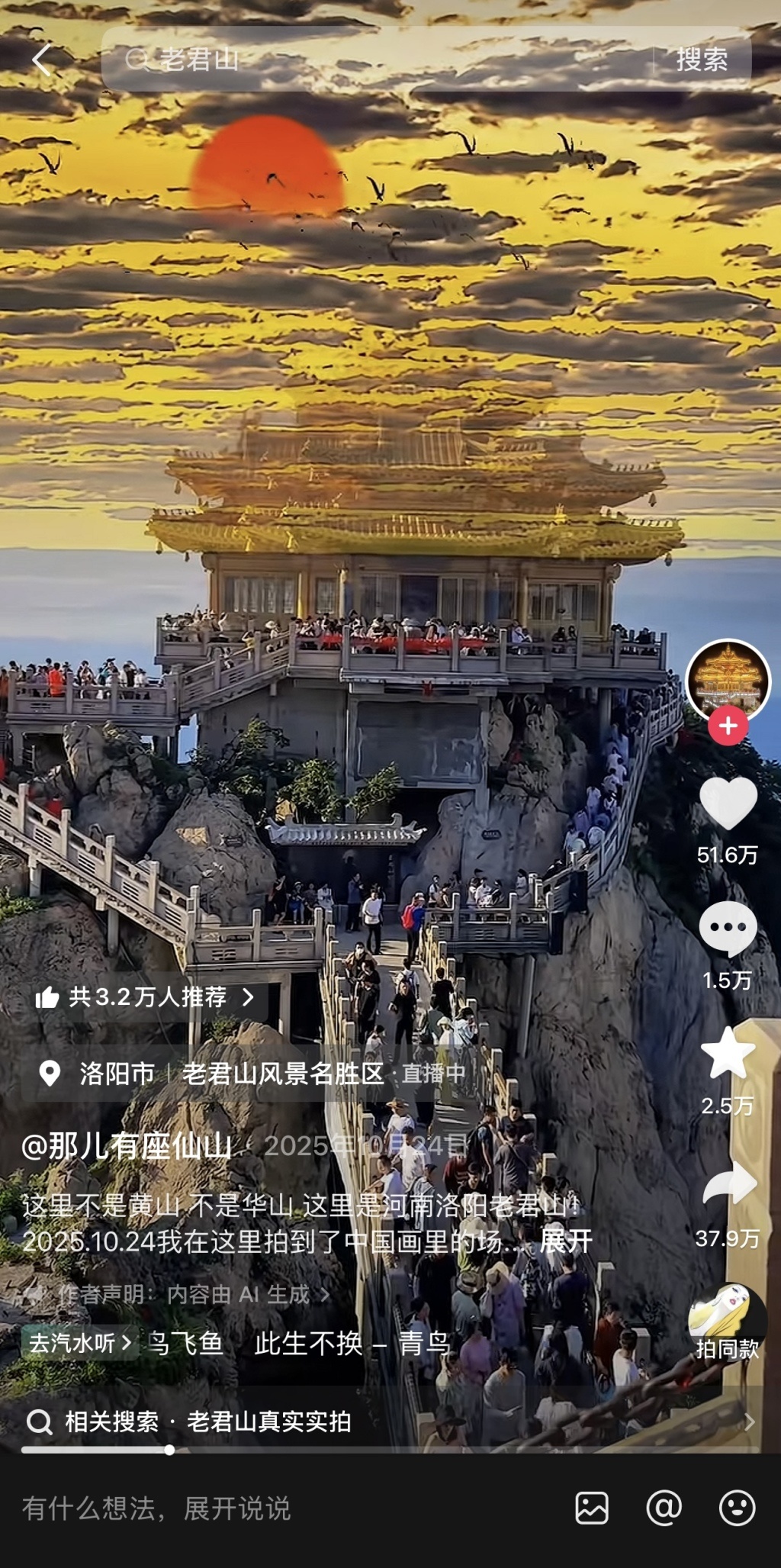 自称为“老君山职责主说念主员”运营的抖音账号。