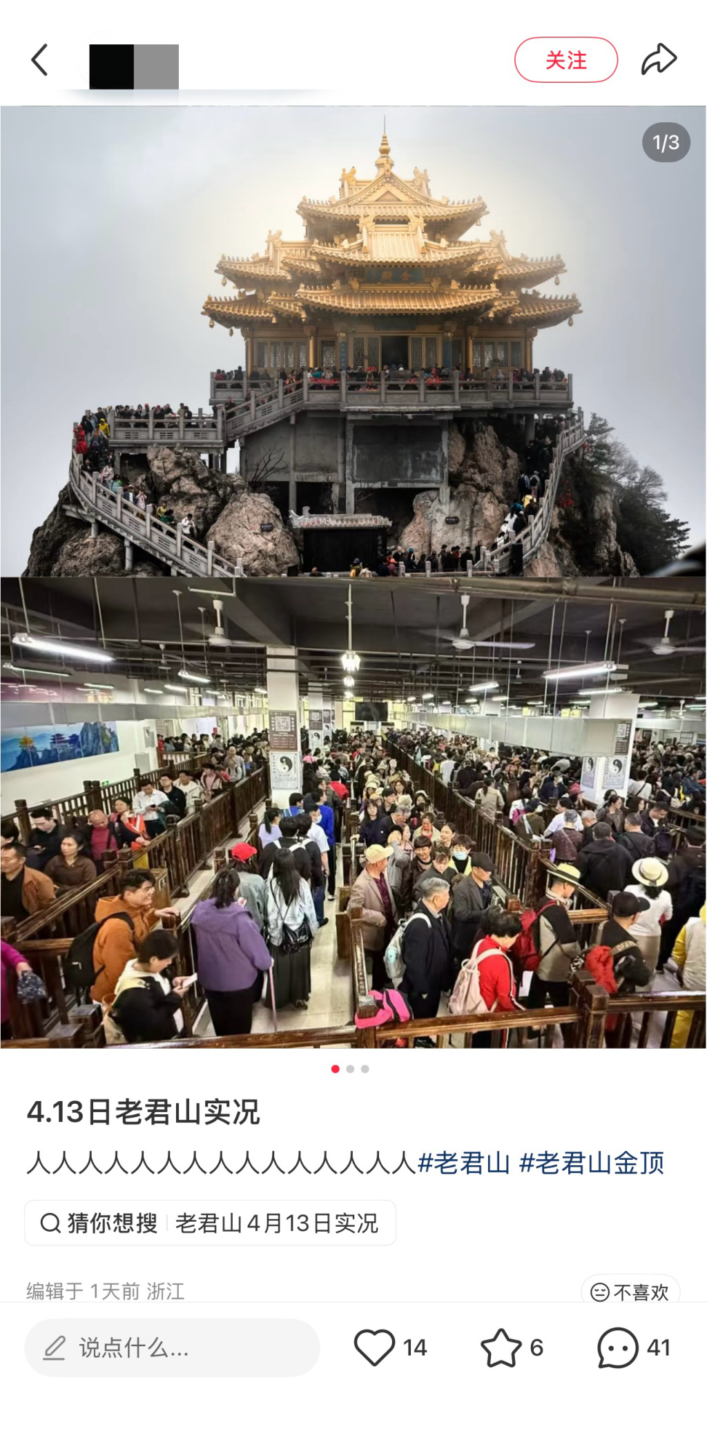 不仅当日,据网友发布的相片清晰,4月13日,一样是职责日的老君山景区亦然“东说念主东说念主东说念主东说念主东说念主”。