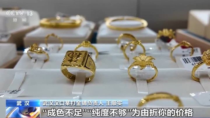 在湖北汉口的一家打金铺,市民胡女士正拿着已往购买的黄金,来到店里进行以旧换新。