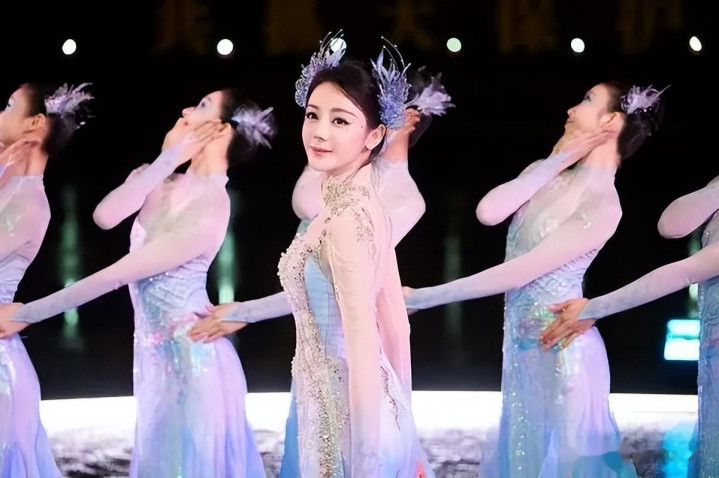 修身的白蓝连衣裙天然显躯壳,但也让热巴看起来更壮硕,尤其是腰胯迥殊宽,比不上伴舞的躯壳。