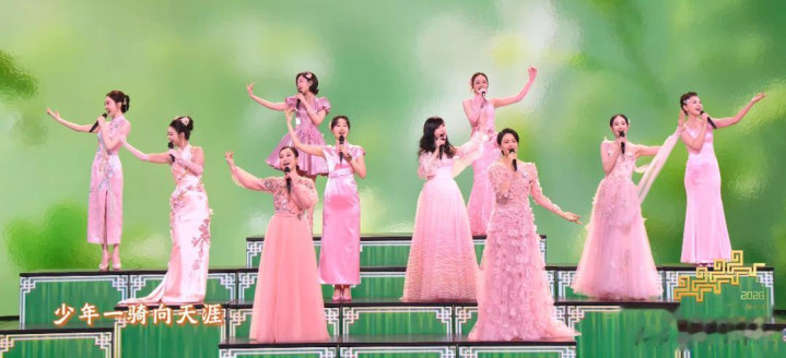 《立春》节目集都了周慧敏等女歌手,都身着粉色投诚裙演唱,有的穿旗袍,有的穿洋装,仿佛“浪姐成团夜”。