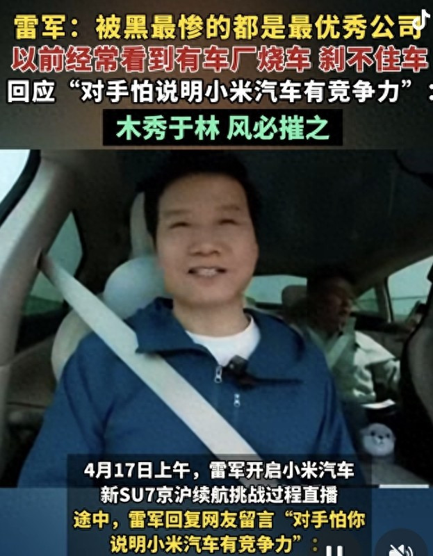 4月17日,雷军开启小米汽车新SU7京沪续航挑战。在全程直播流程中,雷军谈到小米近期以来的负面舆情,直言被黑最惨的齐是最优秀公司。